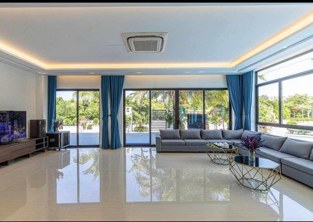 ✓ 1 phòng khách rộng : Tivi 65in, truyền hình internet TV, Điều hòa, Quạt cây, Wifi, Bàn ghế tiếp khách uống trà, Karaoke, WC