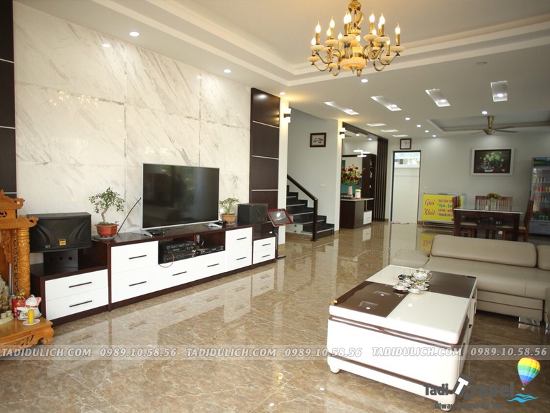 ✓ 1 phòng khách rộng : Tivi 65in, truyền hình internet TV, Điều hòa, Quạt cây, Wifi, Bàn ghế tiếp khách uống trà, Karaoke, WC)