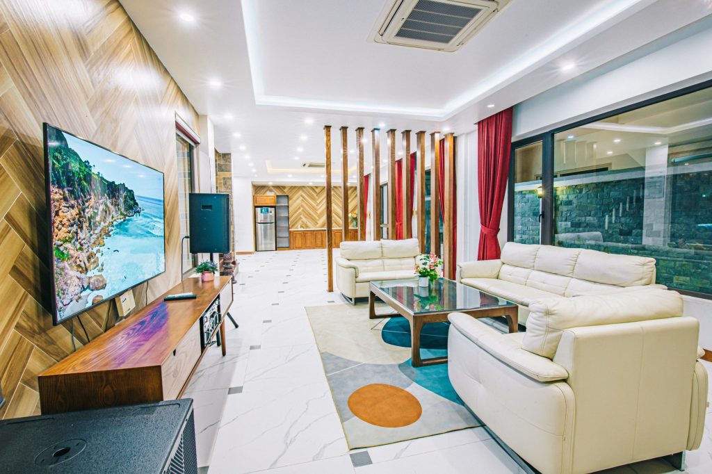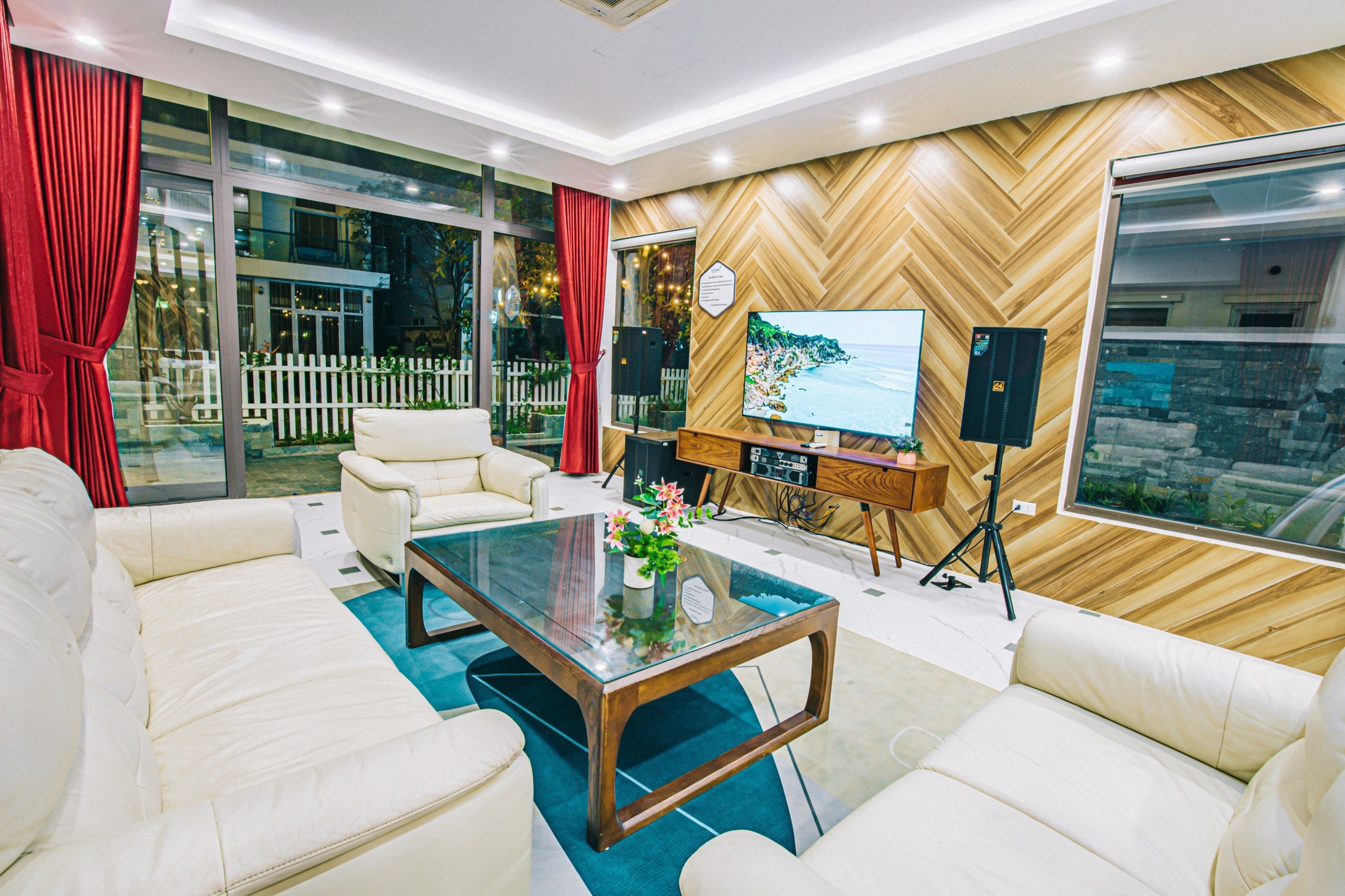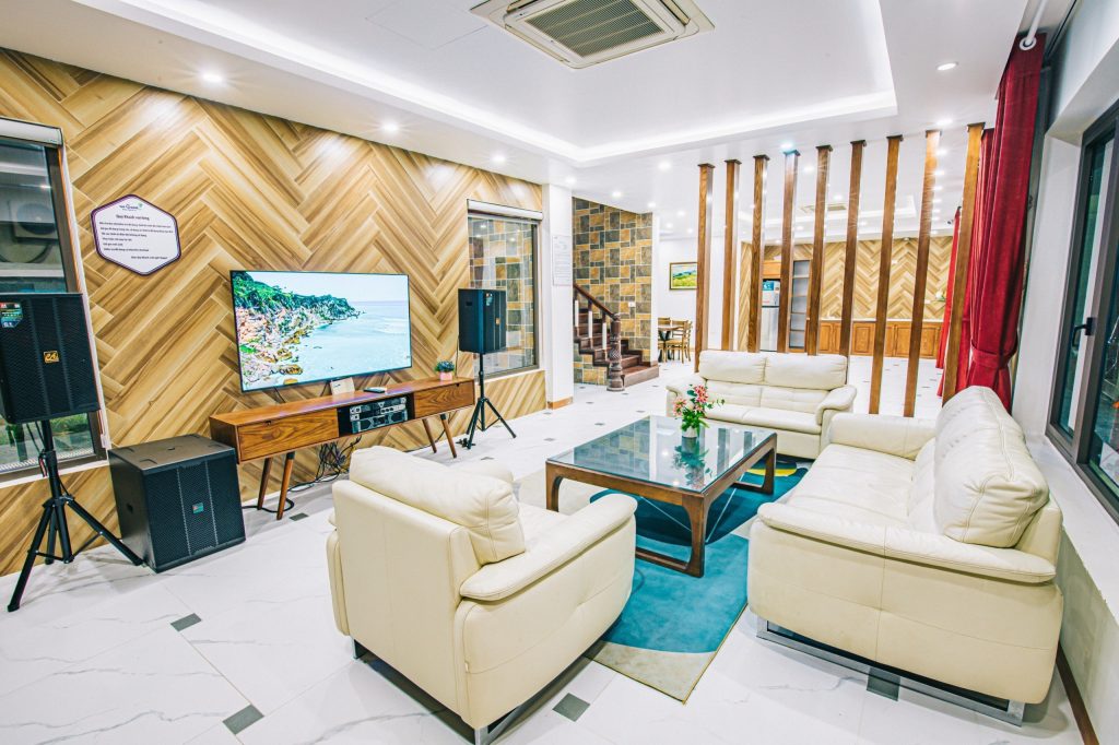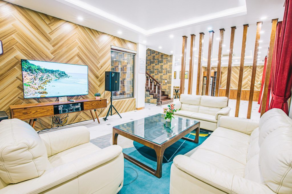 ✓ 1 phòng khách rộng : Tivi 65in, truyền hình internet TV, Điều hòa, Quạt cây, Wifi, Bàn ghế tiếp khách uống trà, Karaoke, WC)
