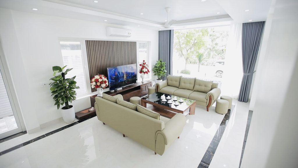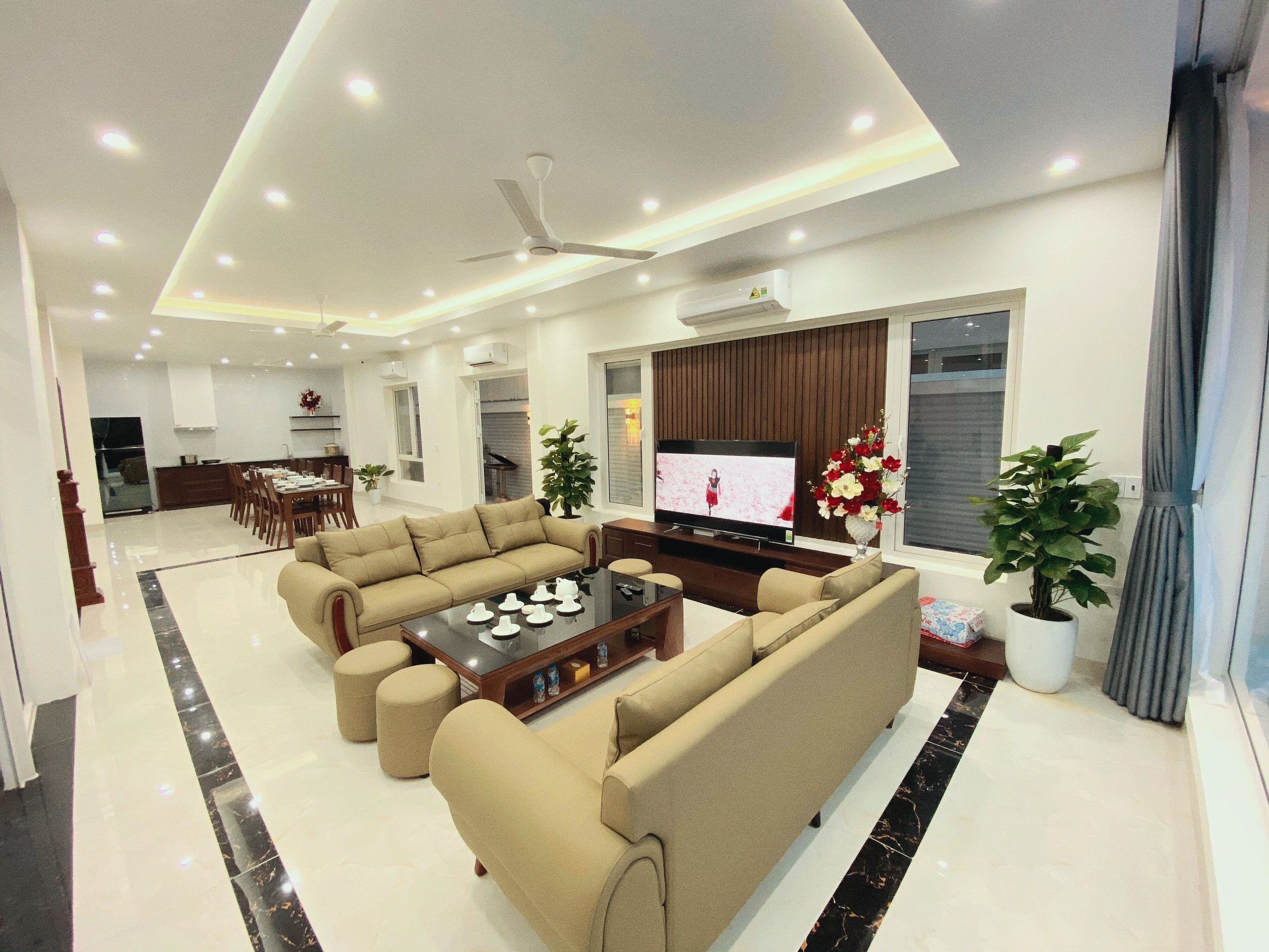 ✓ 1 phòng khách rộng : Tivi 65in, truyền hình internet TV, Điều hòa, Quạt cây, Wifi, Bàn ghế tiếp khách uống trà, Karaoke, WC